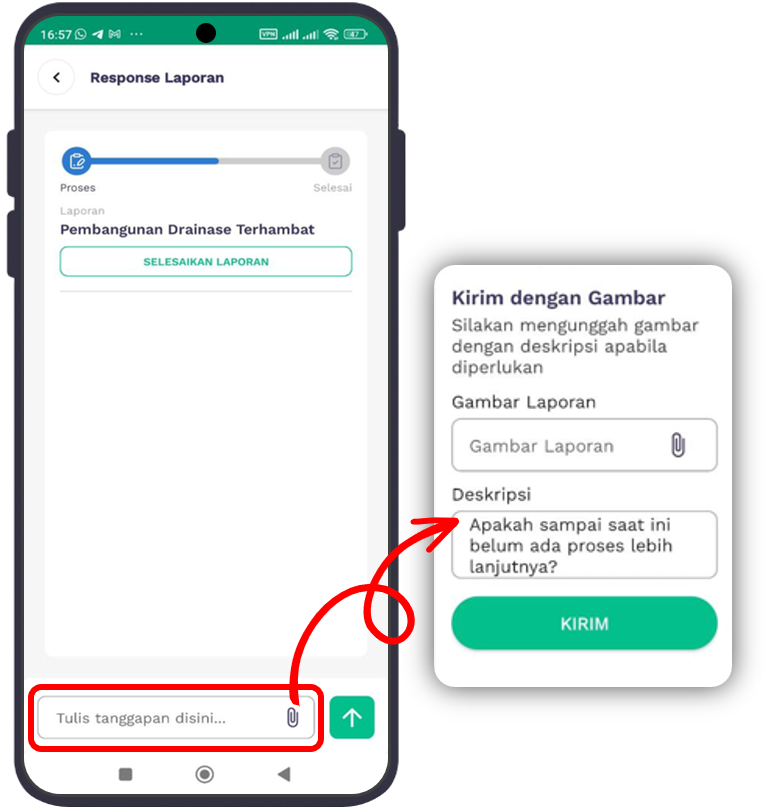 - Icon lampiran file (attach icon): Untuk memberi tanggapan dengan melampirkan gambar maksimal ukuran gambar 1,5 Mb.