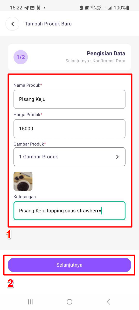 Lengkapi data produk tersebut pada formulir isian yang telah disediakan, lalu klik Selanjutnya.