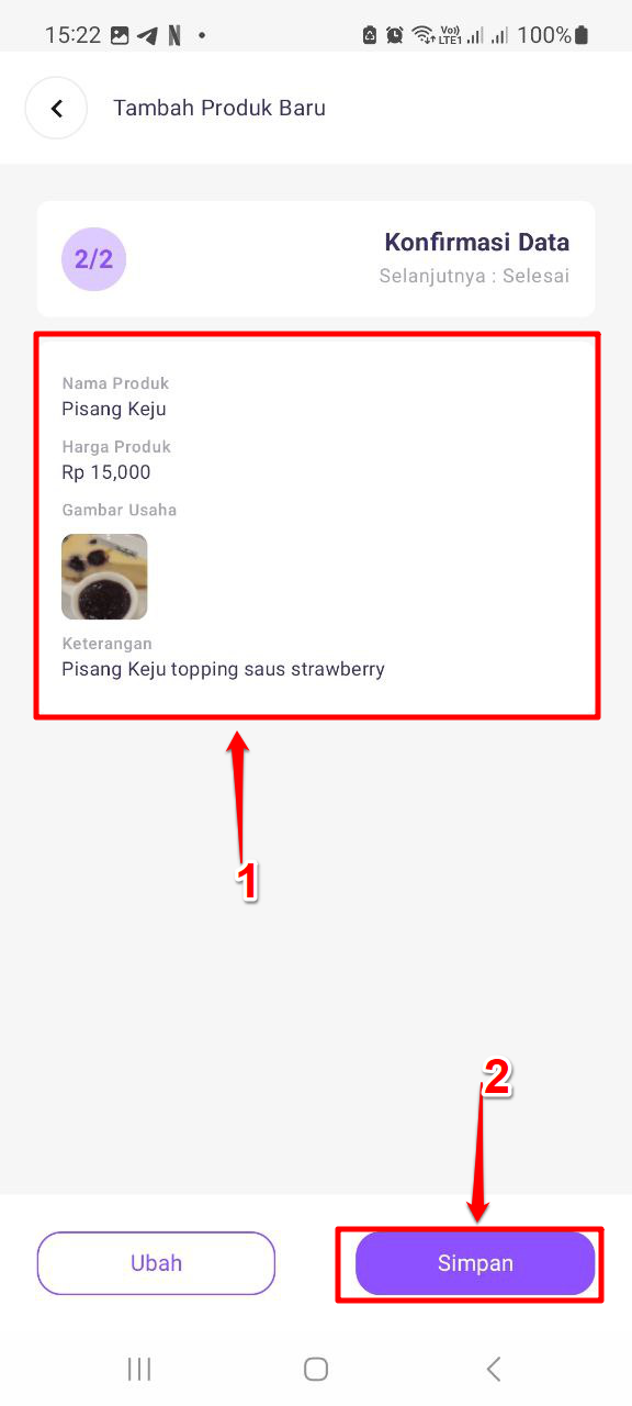Cek ulang kesesuaian data produk yang telah disediakan, Klik Simpan jika telah sesuai.