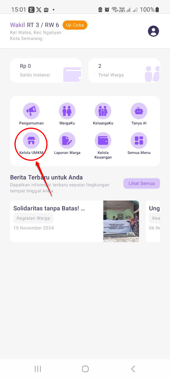 Anda diharuskan Login pada aplikasi eWarga sebagai pengurus RT/RW atau pemilik UMKM tersebut.