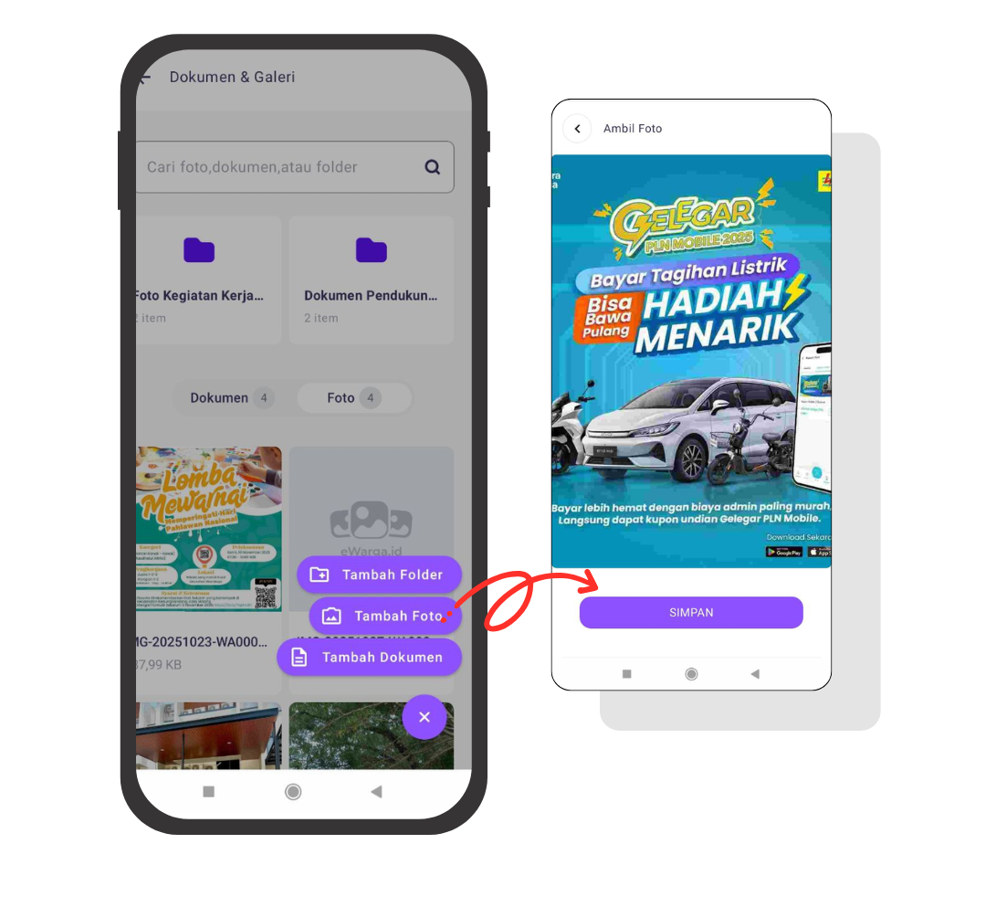 - Setelah Memilih data dokumen atau Galeri dari Ponsel, klik Simpan untuk memeriksa kembali kemudian klik Simpan untuk menyimpan data.