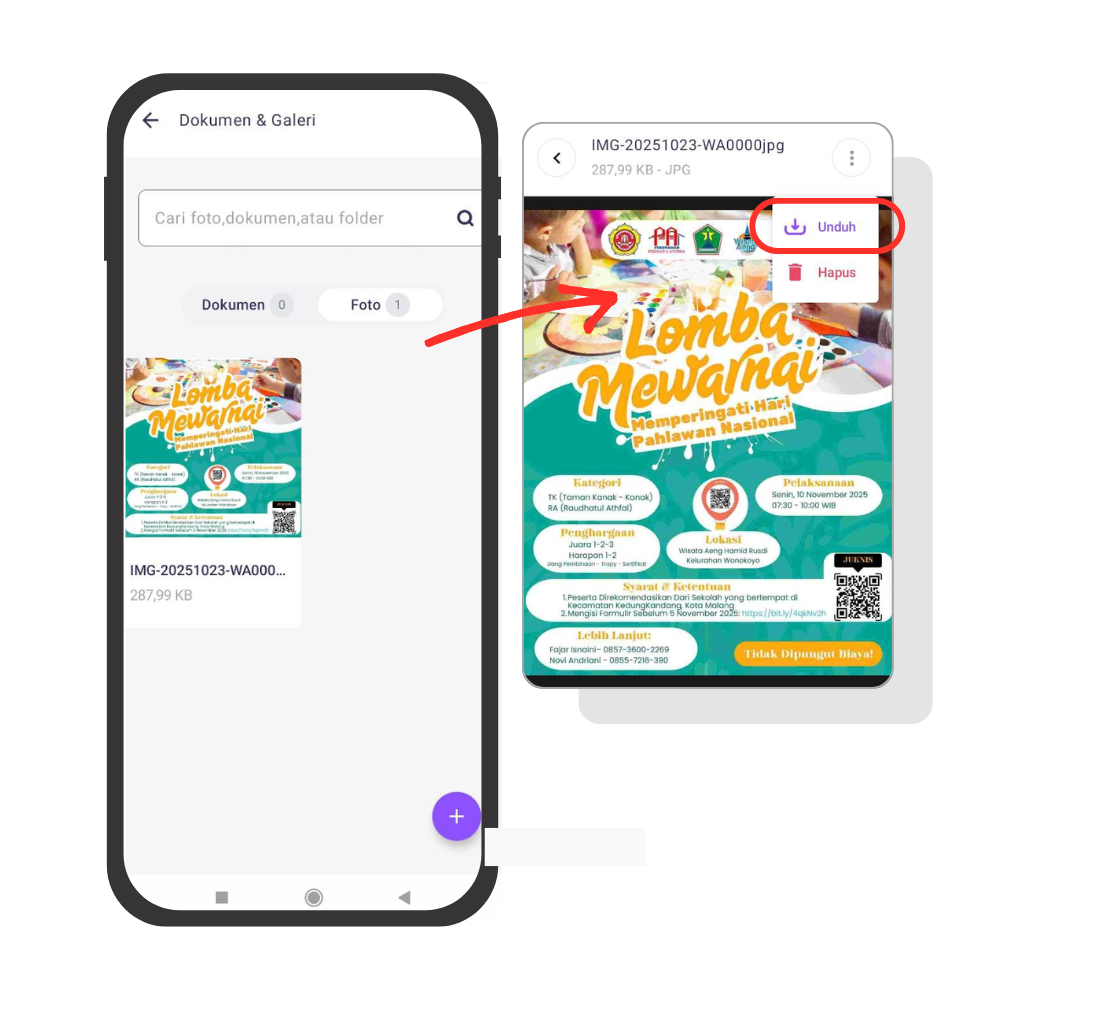 - Mengakses dan mengunduh galeri foto atau dokumen visual yang diunggah oleh pengurus.